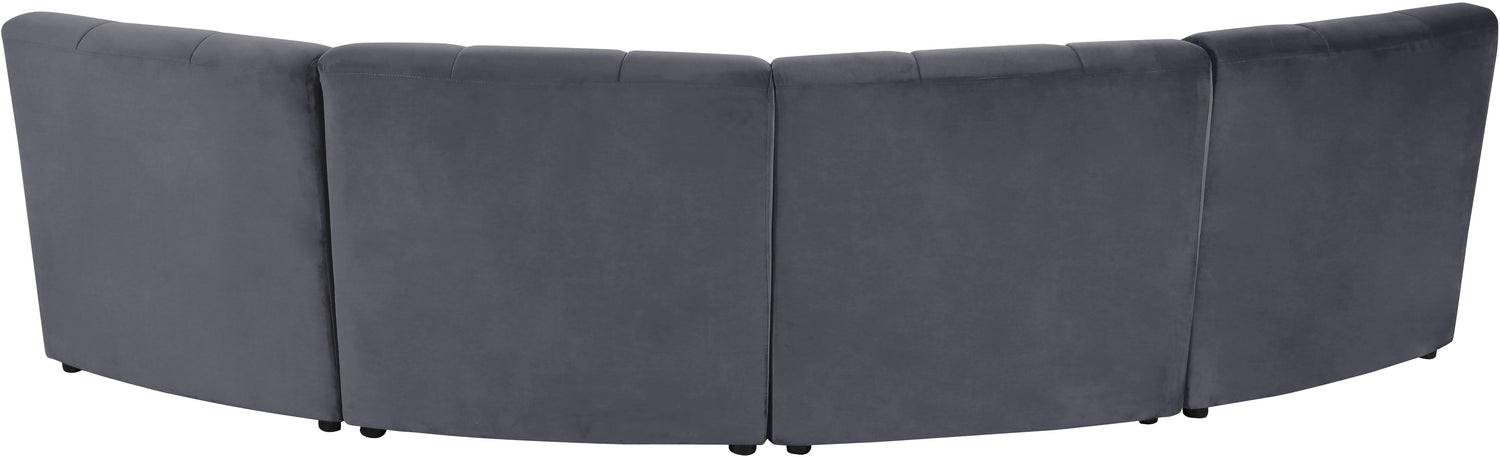 Invest in your home's comfort with this Limitless 4 Piece Sectional. This modular unit offers tons of flexibility in the number of ways that you can put each piece in the Limitless collection together to get the ideal customized look. Upholstered in grey velvet, this beautiful piece is soft and cool to the touch, so you can feel comfortable from every angle. Button and channel tufting add to this unit���s upscale look and contemporary charm.