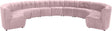 Invest in your home's comfort with this Limitless 11 Piece Sectional. This modular unit offers tons of flexibility in the number of ways that you can put each piece in the Limitless collection together to get the ideal customized look. Upholstered in pink velvet, this beautiful piece is soft and cool to the touch, so you can feel comfortable from every angle. Button and channel tufting add to this unit���s upscale look and contemporary charm.