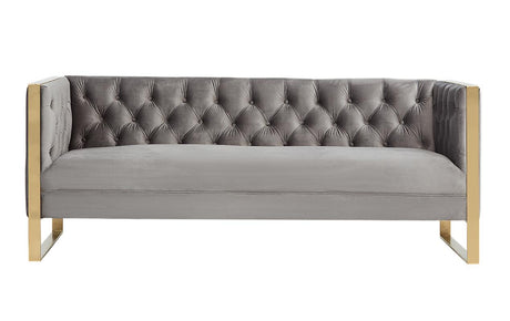 Sophia Upholstered Sofa with Camel Back Grey and Gold