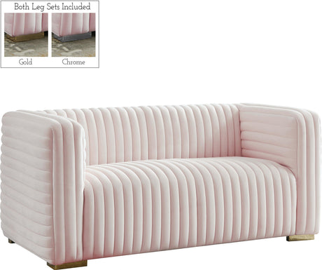 Vivacious Pink Velvet 3pc. Sectional (3 Boxes)
