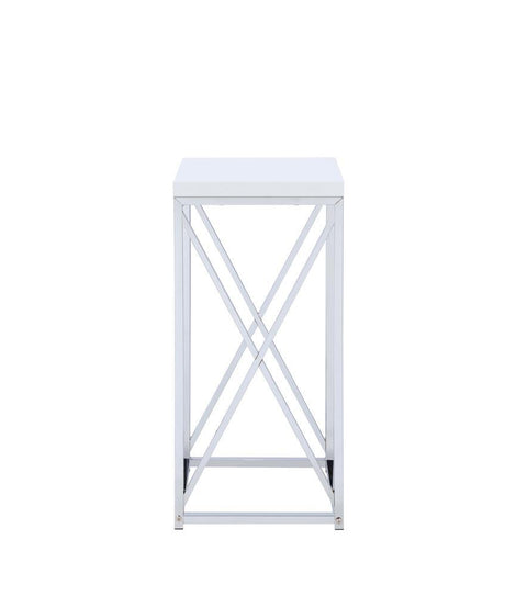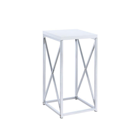 Edmund Accent Table with X-cross Glossy White and Chrome