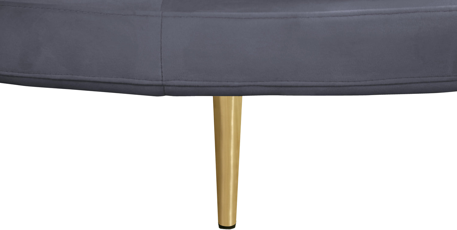 Bring untold elegance to your room with this Circlet velvet roundabout sofa. This exceptionally crafted piece of furniture is upholstered with soft grey velvet material that���s sumptuous to the touch. The four back cushions and matching pillows are comforting to the back as you and guests sit, and the gold iron legs make the sofa a sturdy addition to your room.