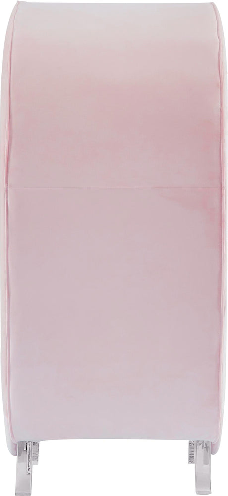 Crescent Pink Velvet Ottoman is backordered and will ship as soon as it is back in stock.
