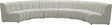 Create a seating group that works for every possible situation with this Infinity modular 6-piece sectional and other pieces in the Infinity collection. Upholstered in soft cream velvet material that feels great against the skin and offers long-wearing beauty, this piece fits with other Infinity items for an infinite number of combinations that get your seating requirements just right but that look just as nice when used on their own.