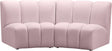 Create a seating group that works for every possible situation with this Infinity modular love seat and other pieces in the Infinity collection. Upholstered in soft pink velvet material that feels great against the skin and offers long-wearing beauty, this piece fits with other Infinity items for an infinite number of combinations that get your seating requirements just right but that look just as nice when used on their own.