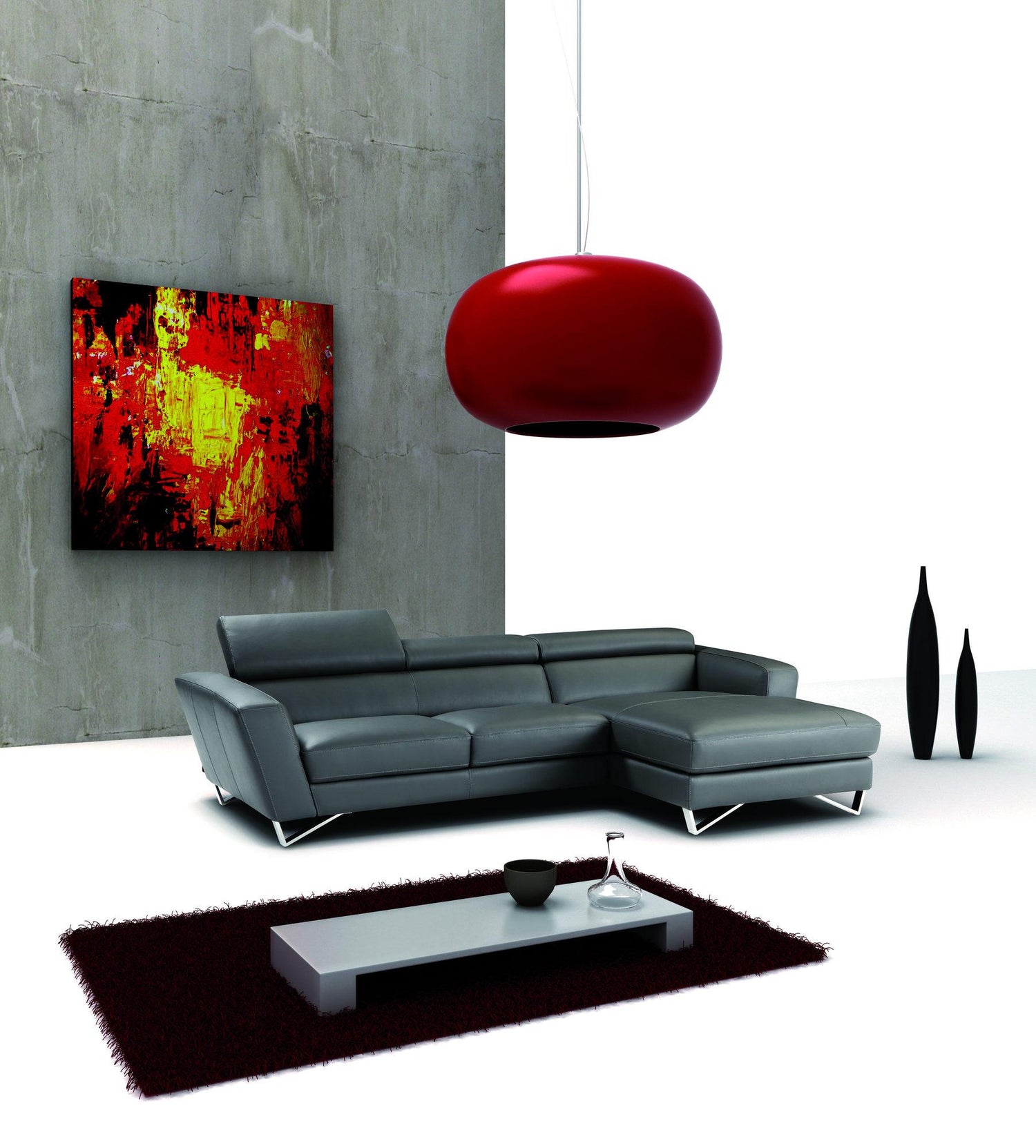 J&M Furniture Sparta Italian Leather Mini Sectional RAF Chaise in Gray