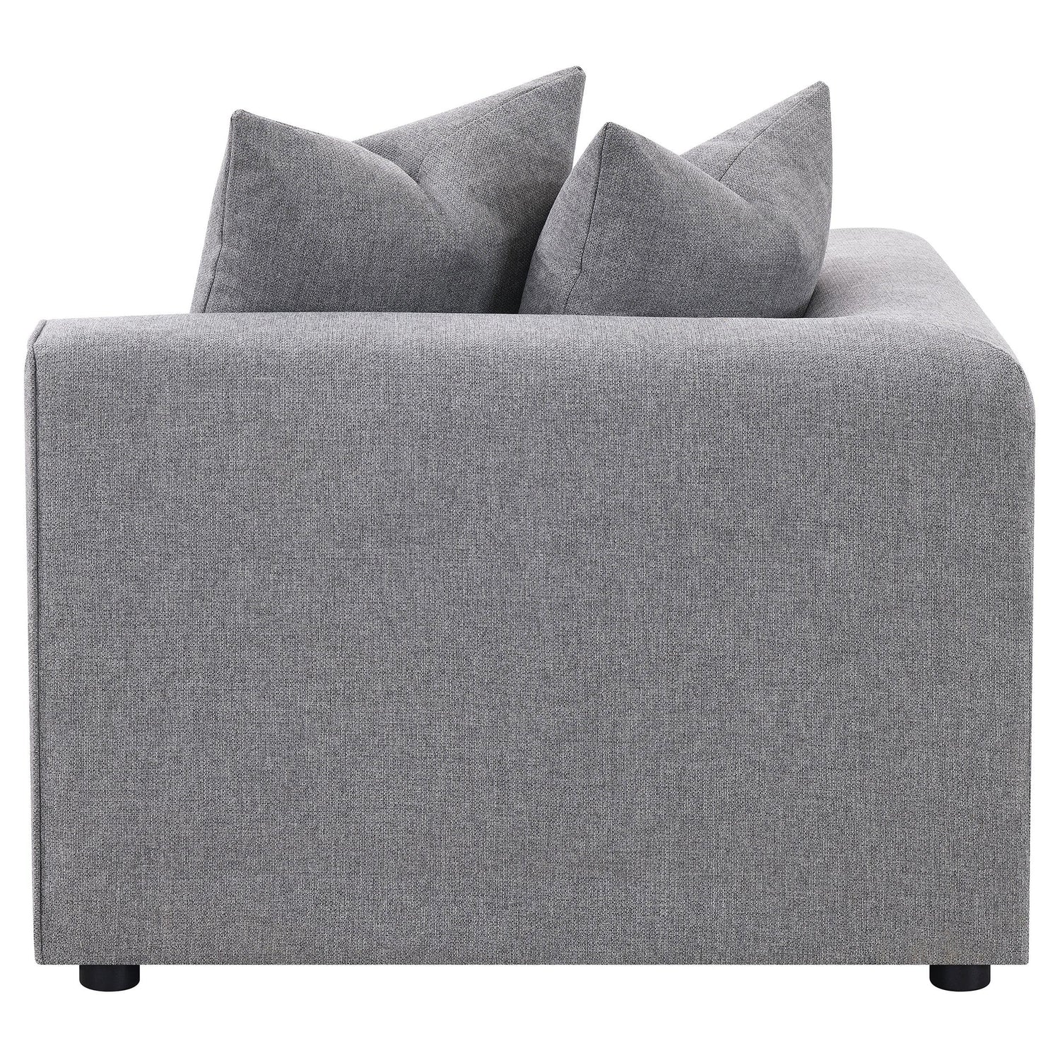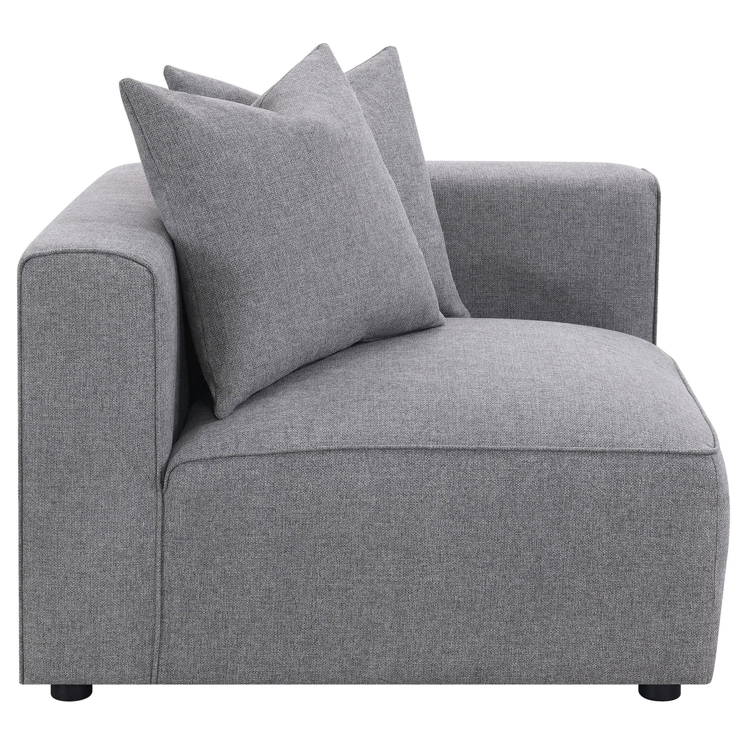 Jennifer Upholstered Corner Chair - Grey is backordered and will ship as soon as it is back in stock.