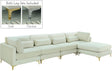 Ready to get cozy? Curl up from the welcoming confines of this Julia velvet modular sectional and you can do just that! Its soft cream velvet upholstery is soft and supple to the skin, coaxing you to relax, unwind, and sit for a spell. It comes with both gold and chrome legs for a customizable and contemporary finish. Pair this Julia piece with others to form an infinite number of seating configurations to meet your particular decorative desires and space requirements.