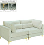 Ready to get cozy? Curl up from the welcoming confines of this Julia velvet modular sofa and you can do just that! Its soft cream velvet upholstery is soft and supple to the skin, coaxing you to relax, unwind, and sit for a spell. It comes with both gold and chrome legs for a customizable and contemporary finish. Pair this Julia piece with others to form an infinite number of seating configurations to meet your particular decorative desires and space requirements.