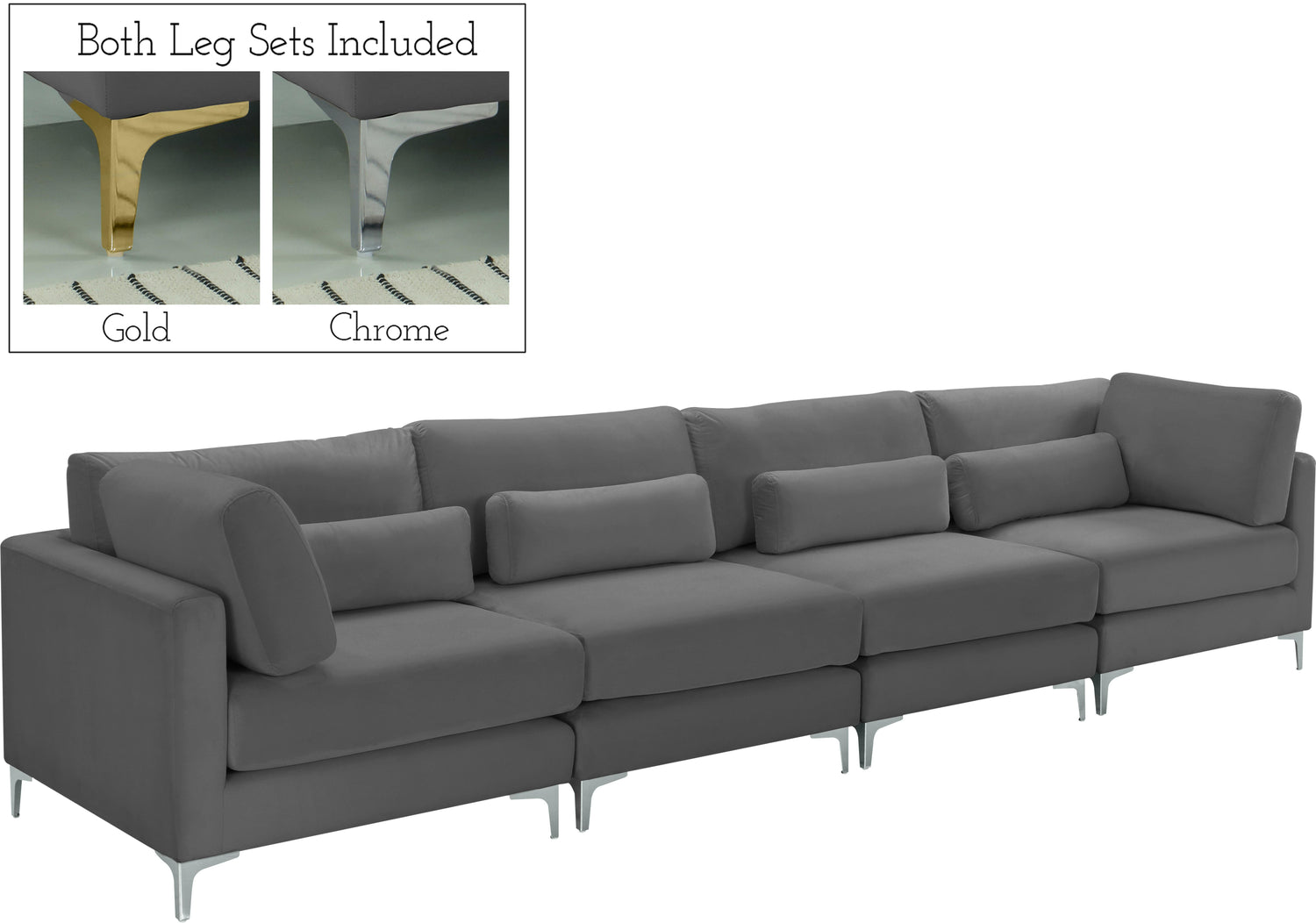Julia Grey Velvet Modular Sofa (4 Boxes)