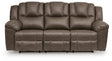 Ready to find your new favorite spot to unwind? This reclining sofa is designed for maximum indulgence, with plush, pillowy cushions that provide wonderful support. Wrapped in supple yet durable faux leather that’s easy to clean, it's just the ticket for movie nights and everyday life. And with one easy pull, you’re on your way to endless relaxation. Talk about the perfect blend of sink-in comfort and inviting contemporary style.