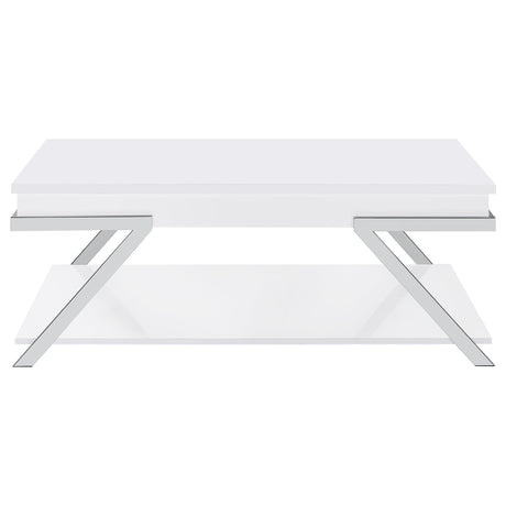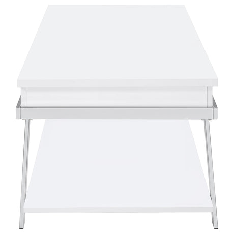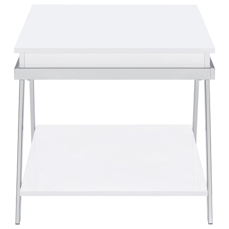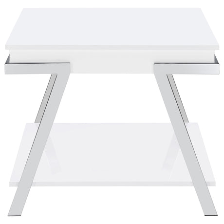 Marcia Wood Rectangular End Table White High Gloss and Chrome
