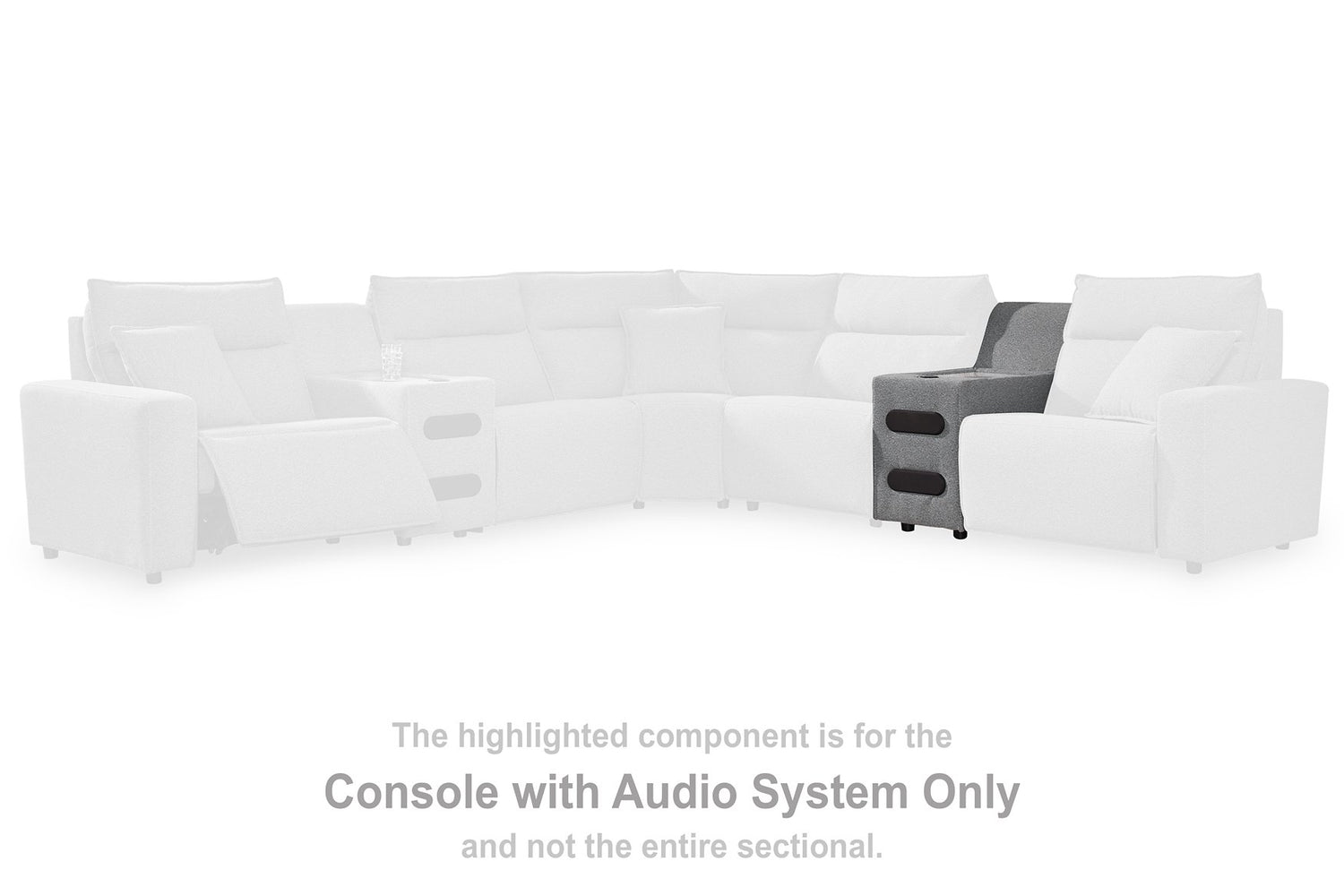 Modmax Power Reclining Sectional with Chaise - 3-Piece: Left-Arm Facing Power Reclining Chaise/Console w/ Audio System/Right-Arm Facing Power Reclining Chaise is backordered and will ship as soon as it is back in stock.
