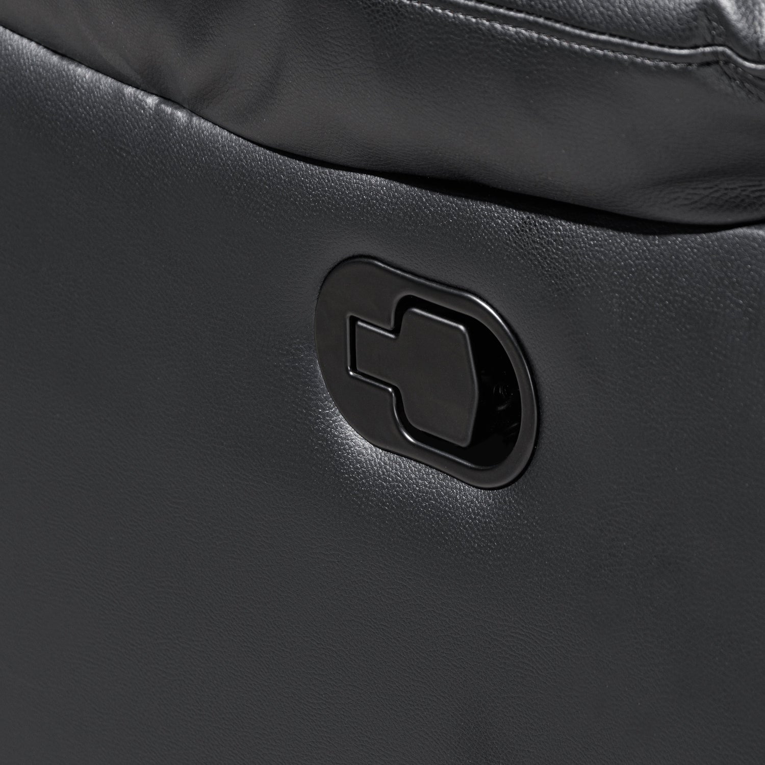 Experience unparalleled comfort with the Nikko Glider Recliner with Hidden Cup Holders . This recliner is built with long-lasting construction, featuring frames crafted from hardwoods and plywood for a stable and durable seating experience. Enjoy luxurious seating with resilient foam cushions and pocket coil support, offering a cozy place to lounge. The two-tone black and gray fabric, made from 80% polyester and 20% PU, provides the soft touch and look of leather with added breathability. Distinctive details such as nailhead trim, diamond stitch pattern seats, double wrapped headrests, and expert tailoring make this recliner a standout addition to any home. Practical lifestyle features include conveniently placed hidden cupholders in discreet pullout compartments under the armrests. The glider recliner offers soothing, gentle gliding action, plush pillowed arm and headrests, reclining backs, and comfortable footrests, providing the ultimate place to unwind. Enjoy unparalleled comfort and style in your home with the Nikko Recliner.