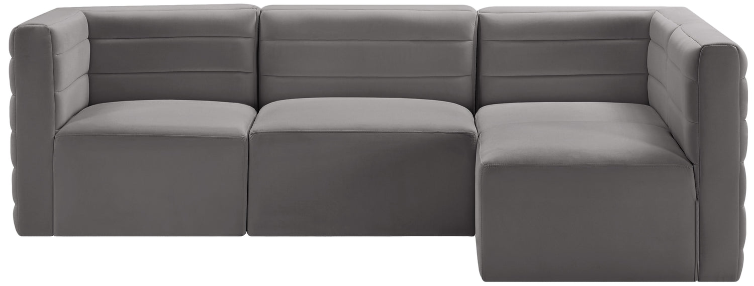 Quincy Grey Velvet Modular Sectional is backordered and will ship as soon as it is back in stock.