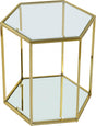 This SEI end table puts you in complete control of the look of your space. Use a single table for a small space, or put together two or more tables for an expanded look when game night requires extra room for you to spread out. The beautiful brushed gold frame holds a glass top with mirrored base and parallel mirrored bottom shelf. The modular design lets you connect as many tables as you need for a custom solution to your requirements.