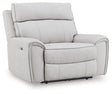 Smart, clean and ultra modern, this power recliner is utterly in vogue. You'll love its indulgent cushions and contemporary bustle back styling. The sumptuous fabric, accentuated with contrasting welting, easily blends with your decor. And with reclining at the press of a button, this piece proves chic design and superb comfort go hand in hand.