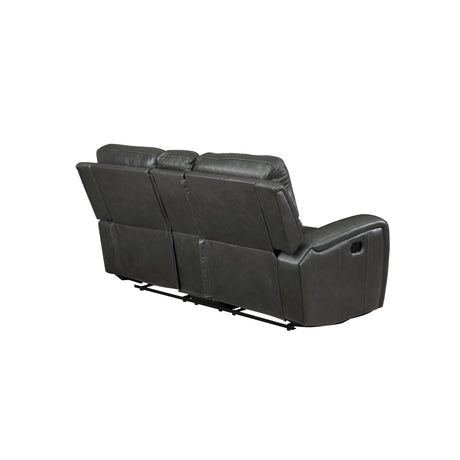 LINTON LEATHER CONSOLE LOVESEAT W/ DUAL RECLINERS-GRAY