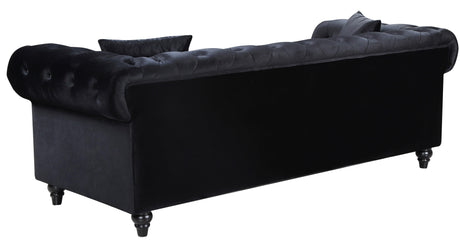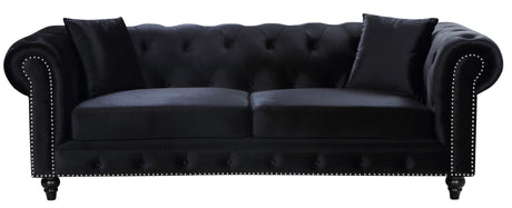 Elegant and eye-catching, the stunning Chesterfield Living Room from Meridian Furniture is the perfect addition to any space. Rich Linen covers the plush, comfortable seat, padded with high-density foam and modern tufted design. Strength and beauty is guaranteed with a solid wood frame and legs. Features a nail head design on the arms and includes matching throw pillows.