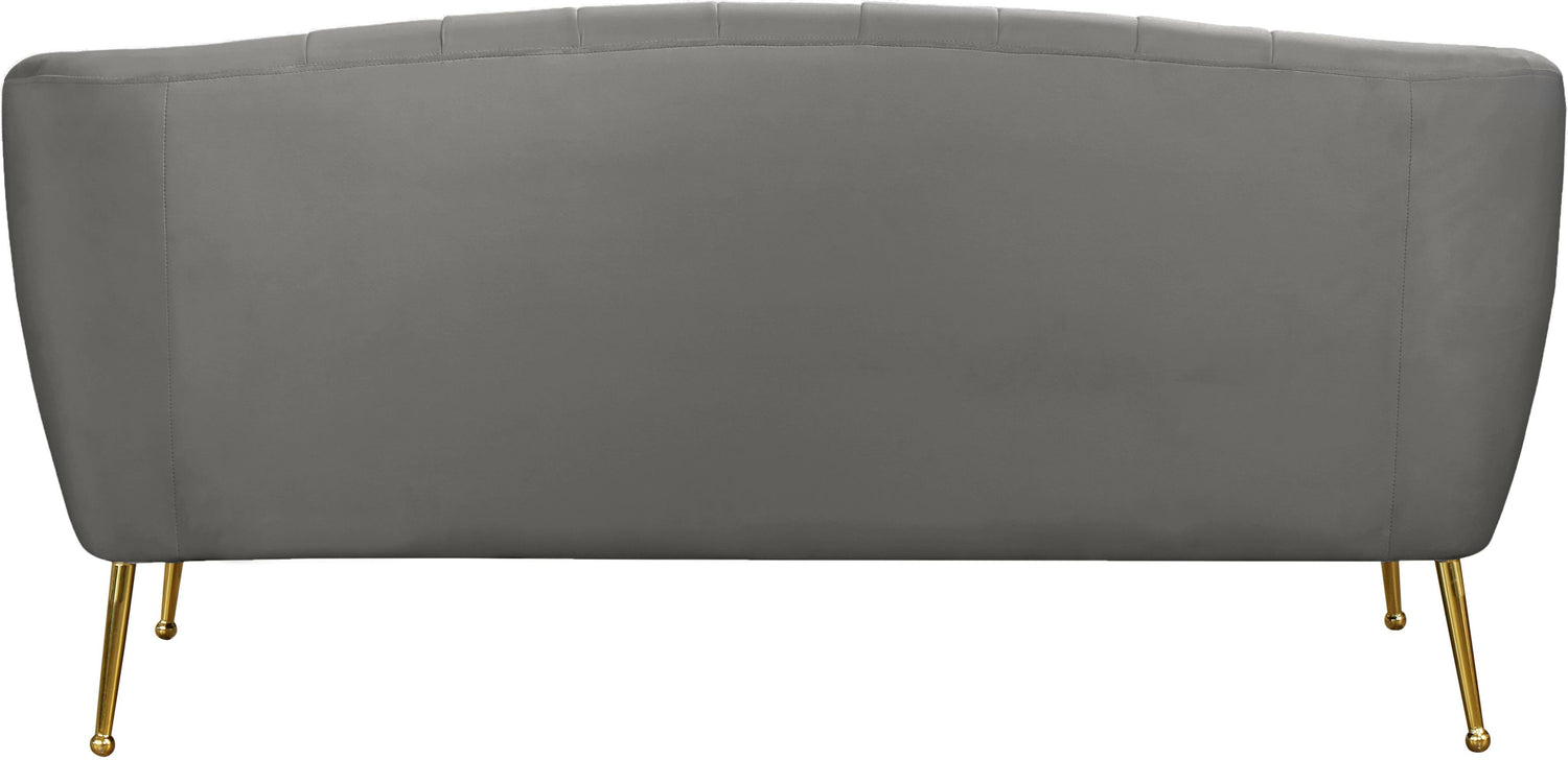 Dress up your living room space with this Tori Velvet Loveseat. This plush loveseat features sleek grey velvet upholstery that covers every square inch, adding a sumptuous and svelte look to your room. The gold legs with a ball design on the foot adds to the elegant look of this pretty chair, and deep channel tufting adds loft to the back and arms for a lavish feel when you sit down to relax and unwind at day���s end.