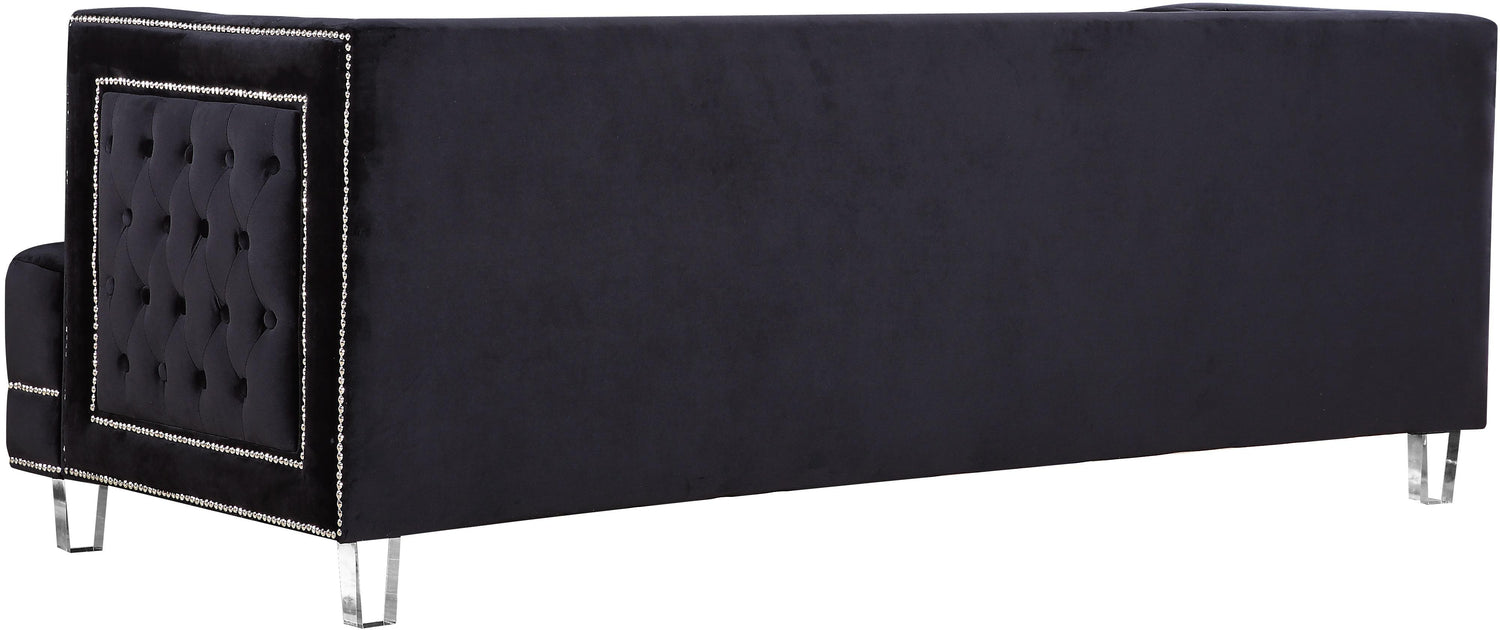 The Lucas Collection by Meridian Furniture. Features beautifully tufted velvet upholstery with a custom nail head design and clear acrylic legs. This collection is guaranteed to be the highlight of any home.