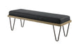 Accessorize a casual space in charming style. This bench provides utility as a seating venue as it snazzes up the carefree elegance of a transitional room or entryway. Retro-look hairpin legs support a dual-layer seat. Dark blue denim upholstery creates a dynamic look that's versatile and stylish. This eye-catching bench is an ideal complement to a fresh, invigorating mid-century scheme.