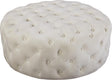Rest weary legs at day's end atop the welcoming comfort of this Addison cream velvet ottoman. This Hollywood-inspired ottoman features deep button tufting from top to bottom for a luxe look and is covered in velvety upholstery for added glam. The vibrant cream color makes a bold statement in your space and adds a pop of cheery color to your room. This substantially sized ottoman also doubles as an extra seat and is padded thickly for supreme comfort.