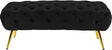 Inject Hollywood glam into your space with this Amara Black Velvet Bench. Its rich velvet upholstery gives it a sleek, modern look while stainless steel legs with a gold finish add to its lavish appearance. This bench has a wide seat with a plump cushion that cradles your body in comfort while you unwind and relax. The button-tufted top keeps the material inside from shifting, so it stays aloft and ready to comfort you as you sit.