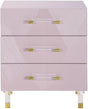 The things you need most at night stay organized and ready for use inside this Anastasia Side Table. This lovely table features a pink lacquer exterior with acrylic legs for a look that's uber modern and sophisticated in your bedroom sanctuary. The three drawers glide open easily, allowing plenty of room for holding reading material, night-time medicines, and other essentials. Sleek hardware on the front adds to the Anastasia Side Table's modish look, ensuring its easy fit in your contemporary bedroom.