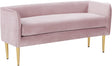 Sit or recline in exquisite comfort on this Audrey bench from Meridian Furniture. The pink velvet is smooth and soothing to touch, perfect for relaxing after a long day of activities. Underneath the bench are four golden legs for sturdy support with caps on each leg to protect your floors. The contemporary design suits modern households while the 20-pound weight makes it easy to move around as needed. Sit the bench in the living room for extra seating or by the front door for putting on shoes.