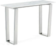 Pull your living room together with this stunning Carlton chrome console table by Meridian Furniture. This gorgeous contemporary chrome console table features a solid stone top that offsets its rich chrome stainless steel legs, providing the perfect contrast for a modern look. A shiny chrome finish ensures this table will be the highlight of your living room.