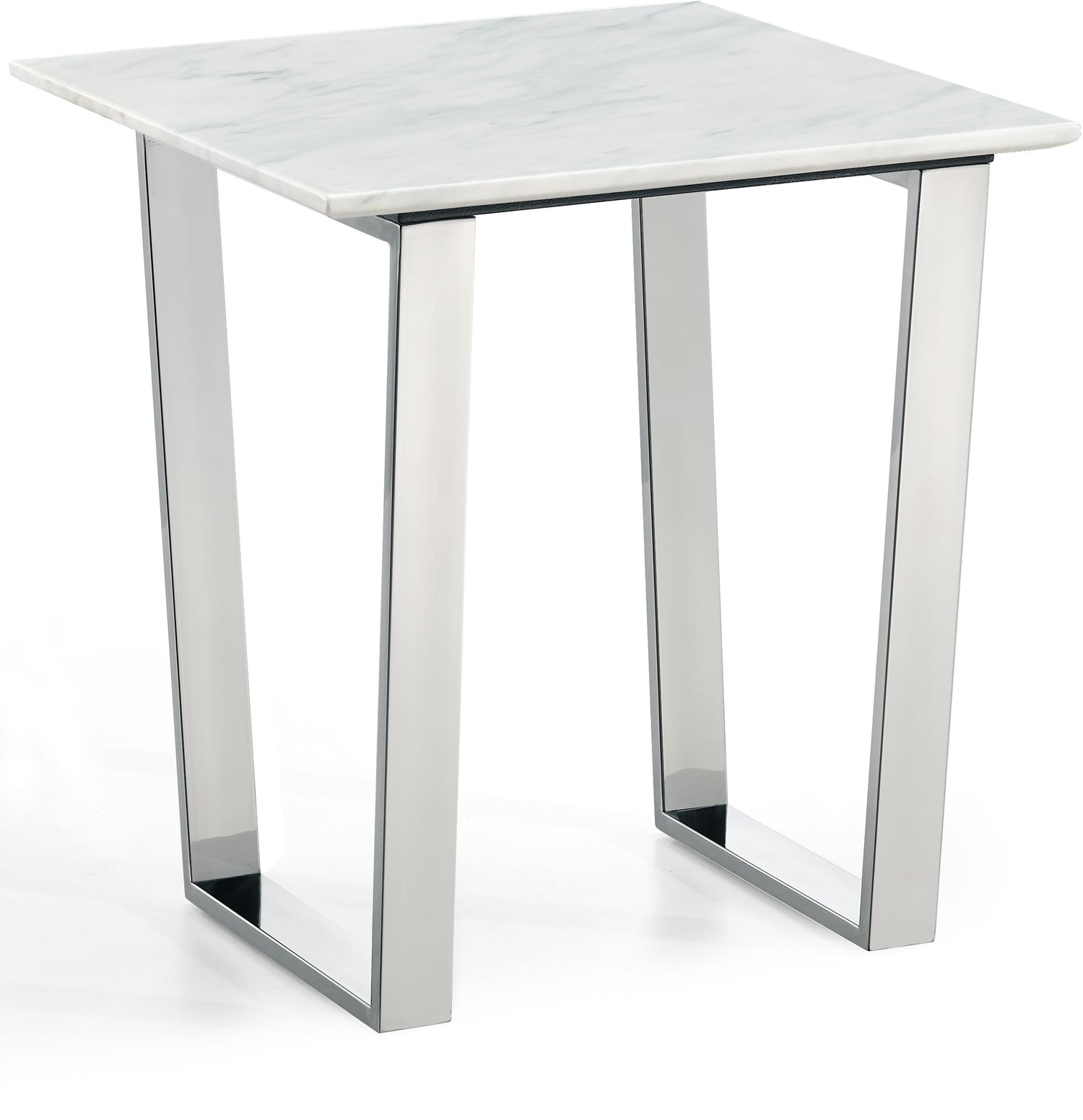 Pull your living room together with this stunning Carlton chrome end table by Meridian Furniture. This gorgeous contemporary chrome end table features a solid stone top that offsets its rich chrome stainless steel legs, providing the perfect contrast for a modern look. A shiny chrome finish ensures this table will be the highlight of your living room.