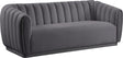 Casual meets elegant in the design of this Dixie velvet sofa. Relax, unwind, and take a load off whileyou'rere kicked back in this handsome seating option. Deep channel tufting adds an upscale touch to the unit���s soft grey velvet upholstery while giving it a dimensional look. Pair this piece with other items in the Dixie collection for a complete and seamless look in the living room or den.