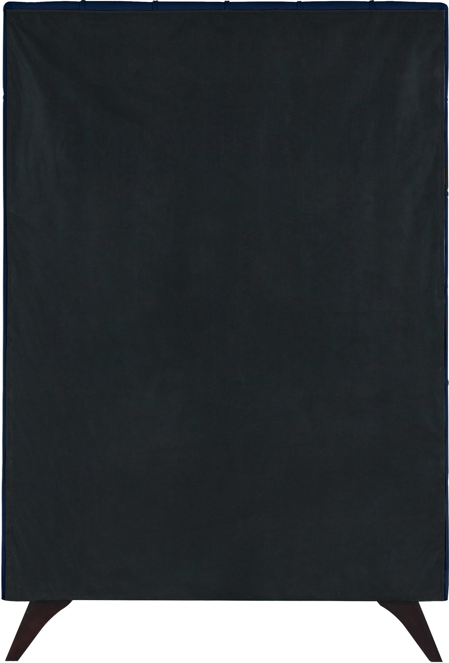 Crawl into this cozy Elly navy velvet twin size bed for a restful night's sleep. The deep button tufting on its tall headboard provides a soft, pillowy surface to lean against for nighttime reading or watching TV. Supported by angled wood legs with an espresso finish, the side rails and footboard are also comfortably padded and upholstered. Contemporary styling ensures that this bed will integrate nicely into any existing d?�cor.