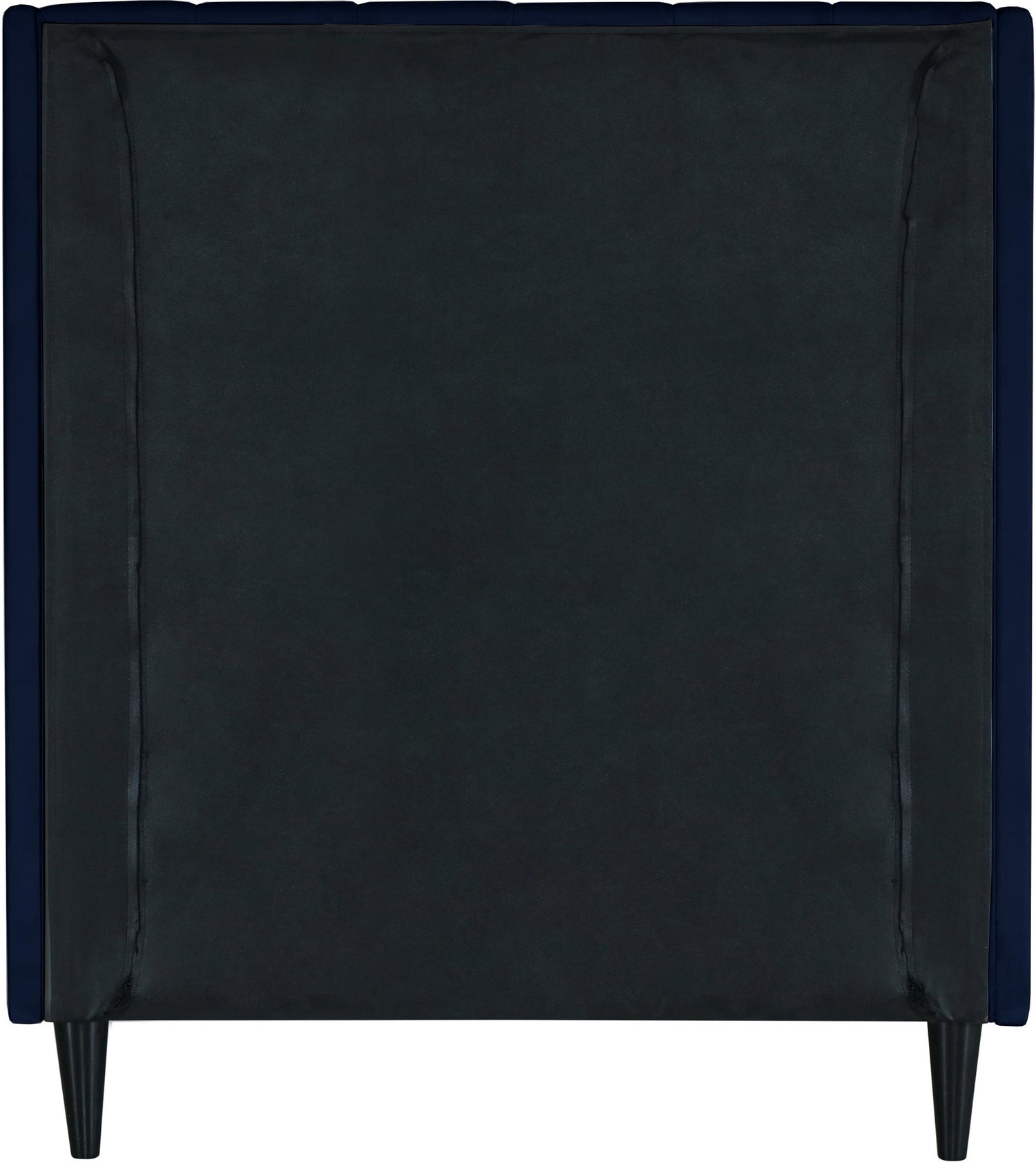 Snuggle up to a pet or other loved one in this richly upholstered Eva navy velvet twin size bed for the ultimate in rest and relaxation. The wing back headboard has cushioned vertical deep channel tufting, and both the side rails and footboard are upholstered too for your comfort. Tapered black wood legs match the upholstery and support this contemporary bed, elevating it sufficiently that you can store items underneath.