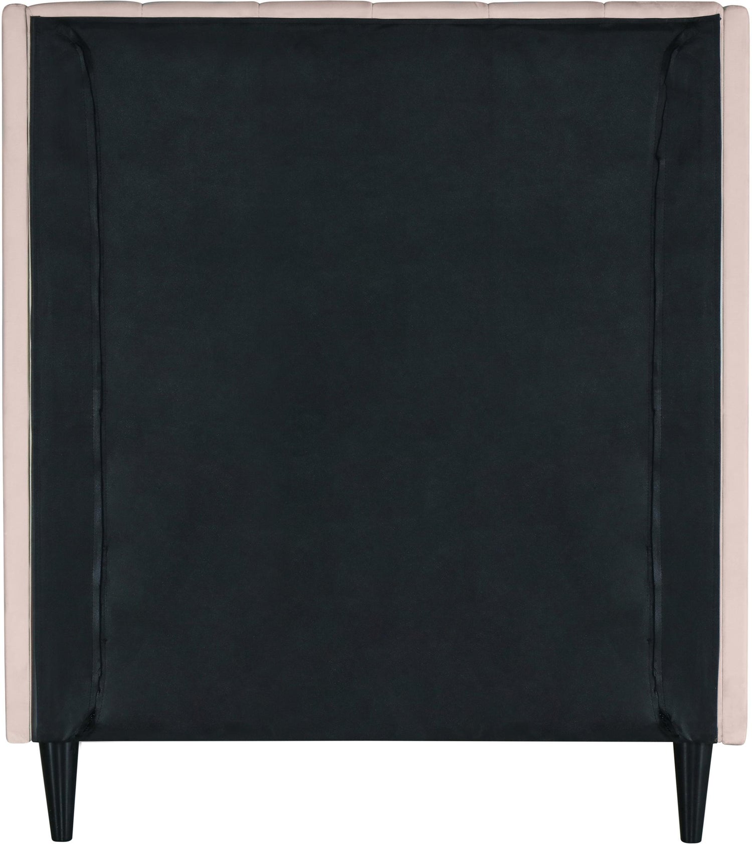 Snuggle up to a pet or other loved one in this richly upholstered Eva pink velvet twin size bed for the ultimate in rest and relaxation. The wing back headboard has cushioned vertical deep channel tufting, and both the side rails and footboard are upholstered too for your comfort. Tapered black wood legs match the upholstery and support this contemporary bed, elevating it sufficiently that you can store items underneath.