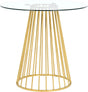 Add a bold touch to your dining area with this chic Gio counter height table. Featuring a round, clear tempered glass tabletop and a polished gold metal base with a wired contemporary design, this dining table transforms your dining space into a stylish haven. At 40 inches round and 37 inches high, this stunning table offers ample space for you to gather around and enjoy a family meal, while adding drama to your existing modern decor.