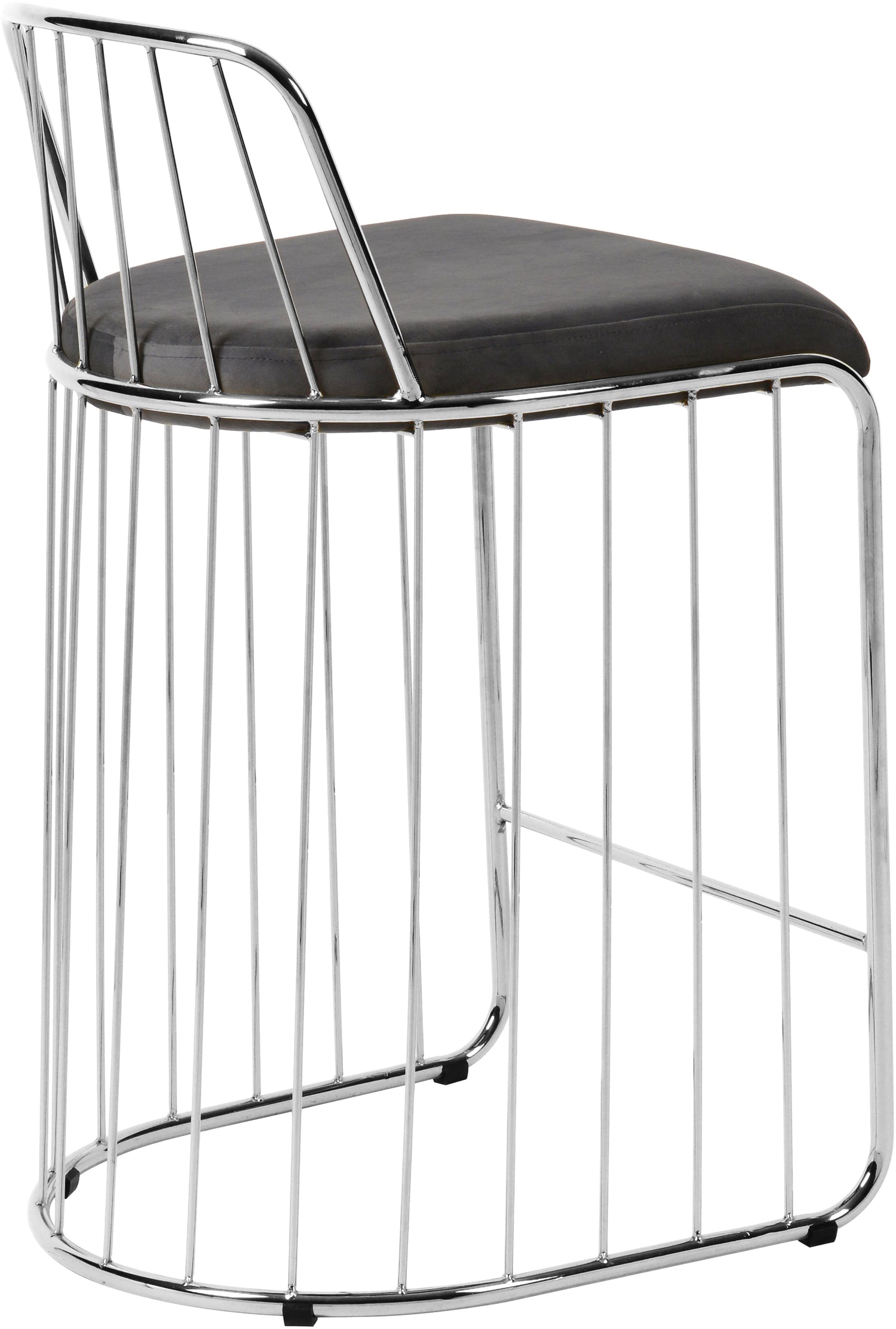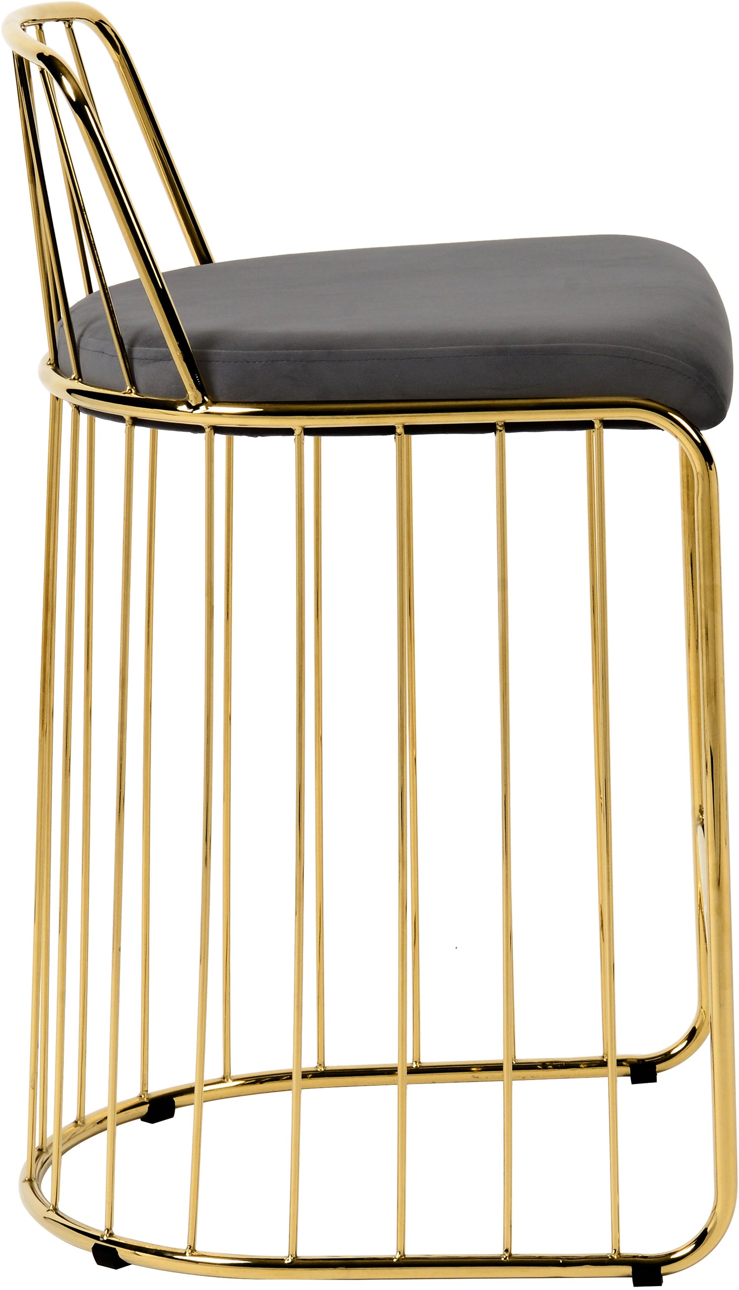 Add dramatic flair to your dining area with this Gio grey velvet stool. Featuring a plush grey velvet cushion and polished gold metal legs, this counter-height stool is perfect for sitting at your modern breakfast bar while enjoying avocado toast for brunch or tossing back a few drinks with friends after work. Its wired contemporary design makes this chair stand out, ensuring it's the focal point of your dining area.