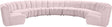 Create a seating group that works for every possible situation with this Infinity modular 9-piece sectional and other pieces in the Infinity collection. Upholstered in soft pink velvet material that feels great against the skin and offers long-wearing beauty, this piece fits with other Infinity items for an infinite number of combinations that get your seating requirements just right but that look just as nice when used on their own.