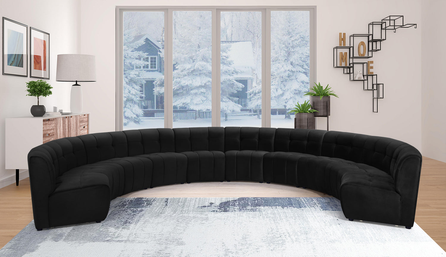 Invest in your home's comfort with this Limitless 10 Piece Sectional. This modular unit offers tons of flexibility in the number of ways that you can put each piece in the Limitless collection together to get the ideal customized look. Upholstered in black velvet, this beautiful piece is soft and cool to the touch, so you can feel comfortable from every angle. Button and channel tufting add to this unit���s upscale look and contemporary charm.