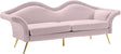 Set your sights on elegance with this Clarissa Pink Velvet Sofa. This stunning sofa features plush velvet upholstery that's soft and supple to the touch, adding a level of luxury to naptime or making for a lavish evening of TV binge-watching. This svelte sofa has a contemporary design with rolled arms and elegant slanted legs made from stainless steel with a goldtone finish. Buy it on its own, or add it to your living room or den with the available loveseat and chair.