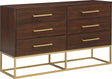 Outfit your space with this Maxine dresser, part of the Maxine collection of contemporary bedroom furniture. This lovely chest features a dark cherry finish over birch veneer construction for durability, strength, and resilience, and it���s equipped with brushed gold metal legs and hardware for a simplistic yet elegant finish. Pair this item with other bedroom essentials in the same collection for a beautiful look in your room.