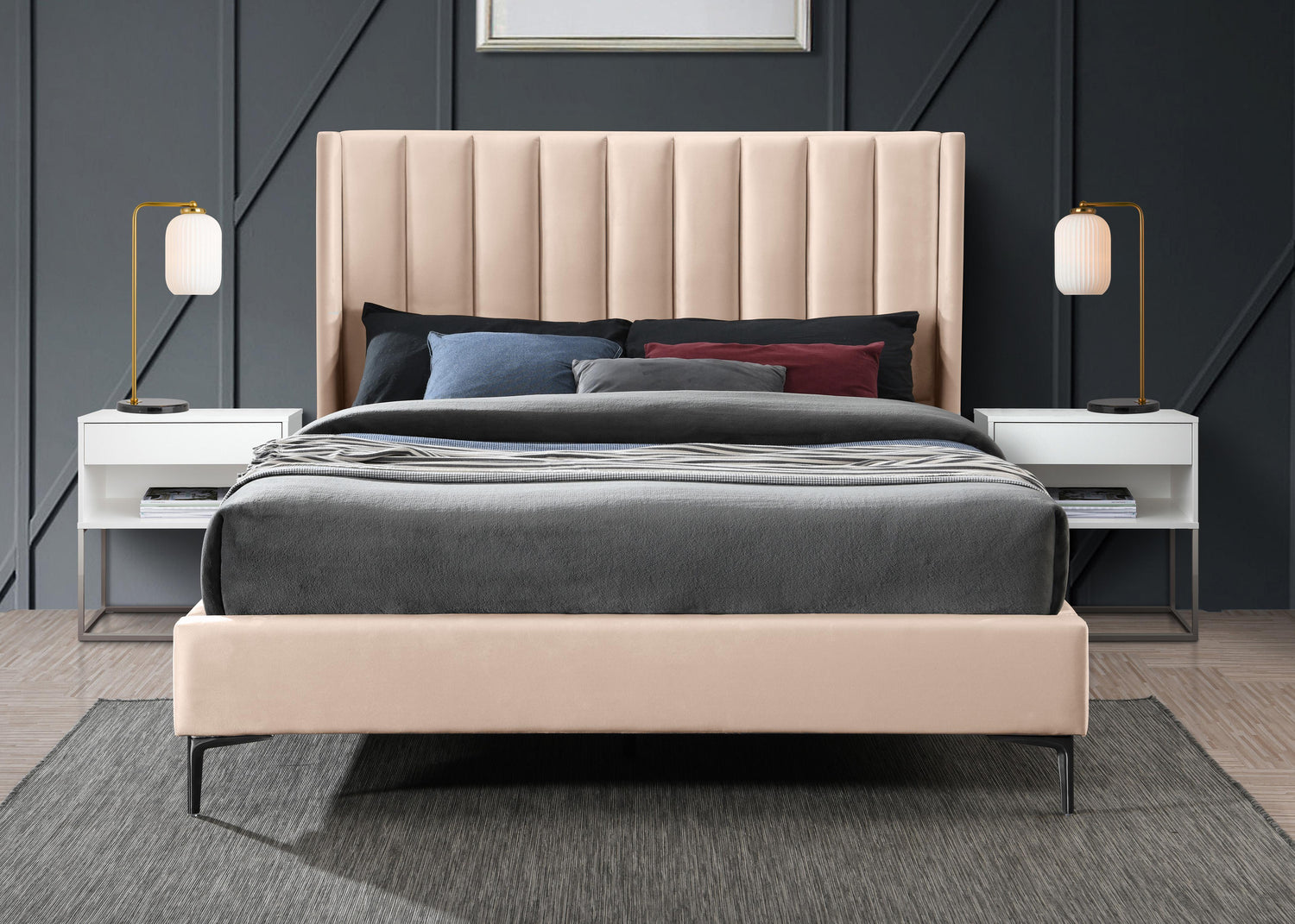 Nadia Pink Velvet King Bed is backordered and will ship as soon as it is back in stock.