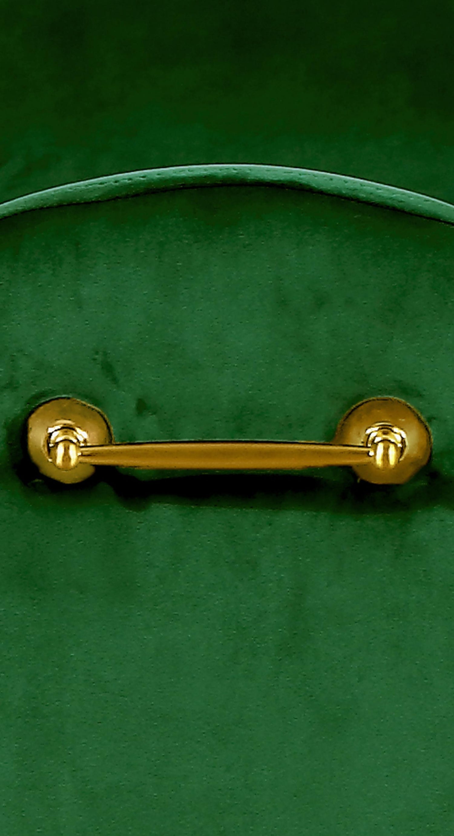 Rest your bones on this beautiful Owen Green Velvet Bench. This handsome bench has an elegant demeanor that will not escape the attention of all who enter your space. The sophisticated polished gold legs have a ball design for a distinctly chic appearance, and the bench is upholstered in rich velvet for a soft and supple feel against your skin. Position it at the end of the bed as a handy seat, or use it in an entryway to give people a spot to sit and put their shoes on before heading out the door.