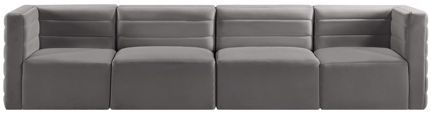 Quincy Grey Velvet Modular Sofa is backordered and will ship as soon as it is back in stock.