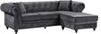 Lounge in luxurious style and comfort with this sleek Sabrina grey velvet reversible two-piece sectional. Featuring elegant, plush velvet upholstery and a deep tufted back, this sectional is a little piece of heaven for you to kick back and relax on. Double row chrome nailheads give the sectional a contemporary element, and a reversible chaise offers a comfortable place to kick up your feet after a long day. Pillows are included as well to add to your comfort.