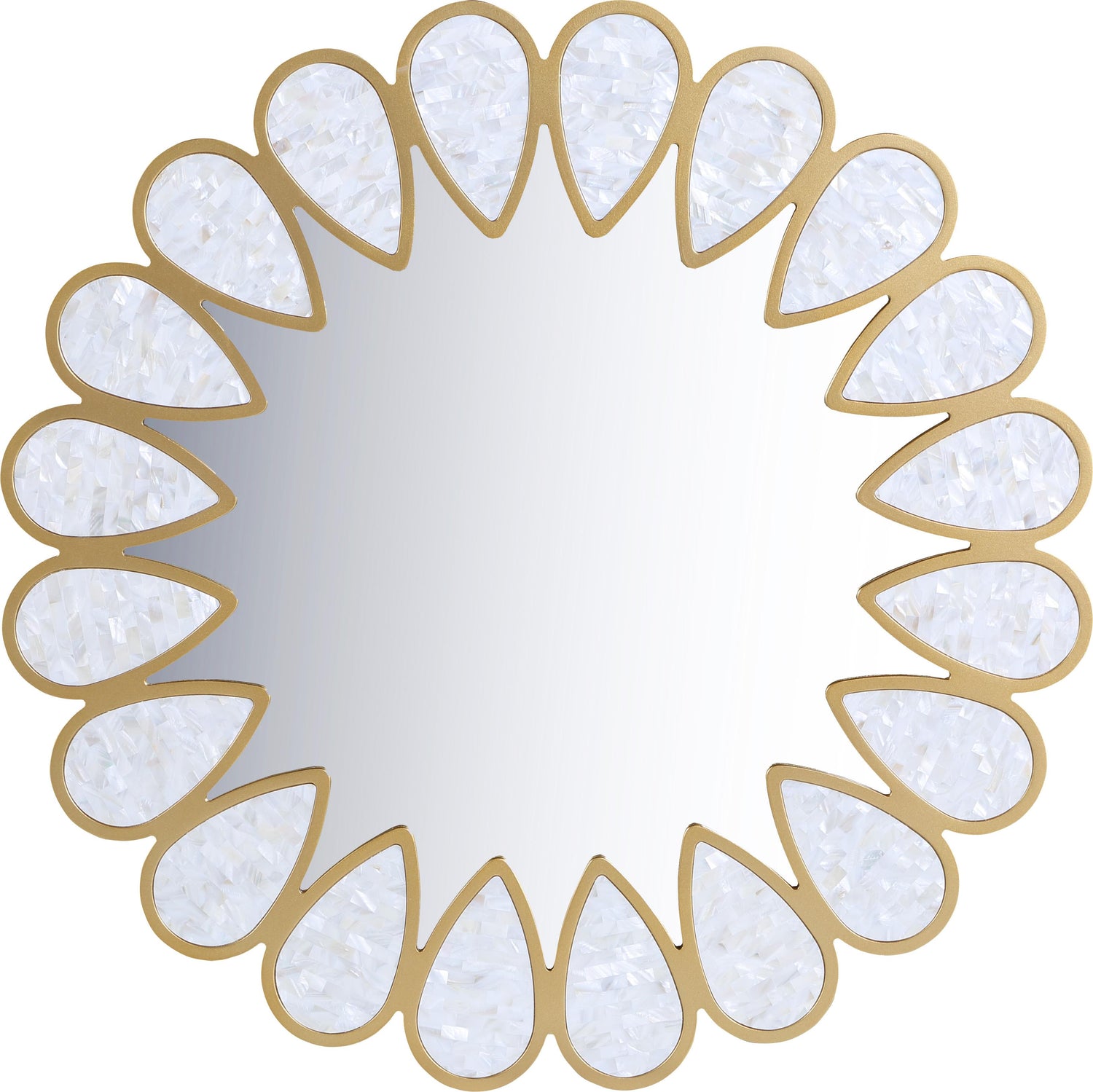Create an instant focal point on your wall when you hang this Shell mirror in your room. A lovely addition to your foyer, entryway, or the space above a headboard or fireplace, this oversized mirror commands instant attention with its shell accents inside its gold frame. Contemporary to the core, this mirror measures a full 32 by 32 inches, making it a beefy accent that is bound to garner loads of visual attention.