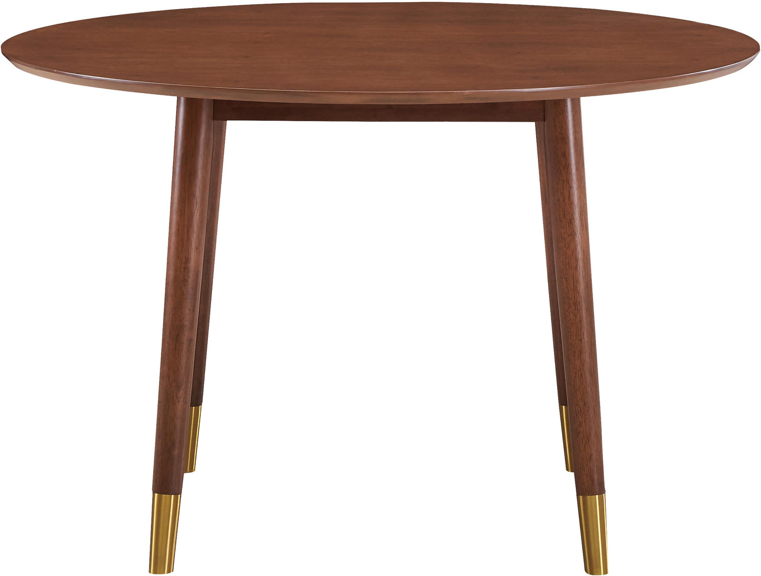 Gather with family or friends to dine, work, or play games on this Sherwood wooden dining table. An attractive walnut finish and oval shape let it blend in with other furniture, and its mid-century modern style is timeless. The round top is perched upon four tapered, gold-tipped legs, and comfortable matching chairs are also available to complete the look. Perfect for an apartment or kitchen, this table's small stature means it can fit almost anywhere.