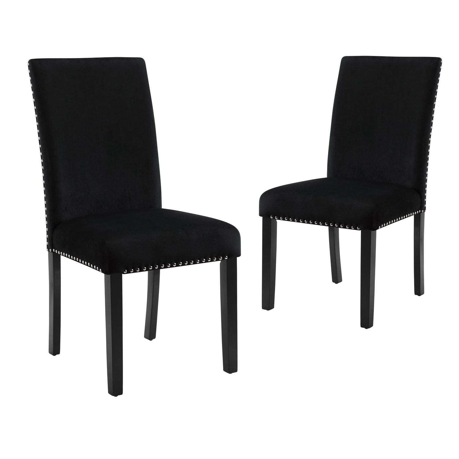 Introducing the New Classic Furniture Celeste Dining Chair – a set of two chairs that seamlessly blend comfort with contemporary elegance. Crafted with solid Rubberwood legs, these chairs boast quality construction, ensuring a strong and stable seating solution for your dining space. The 100% polyester black velvet upholstery covers sumptuous memory foam cushions, offering both softness and durability for an easy-care, luxurious seat. The espresso legs, coupled with glimmering silver nailhead trim, add a touch of modern glamour to the plush velvet seating. Setting up these chairs is a breeze with the included easy-to-follow assembly instructions. Elevate your dining experience with the Celeste Dining Chair – where quality, comfort, and style converge effortlessly.