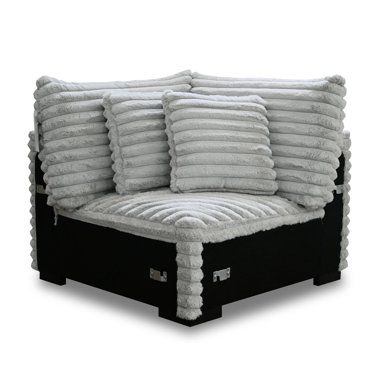 The Embrace Sectional Wedge with 2 Accent Pillows in gray is a stylish and functional addition to your sectional setup. Upholstered in 100% gray polyester fabric with a plush, blanket-like texture, this wedge promises ultimate relaxation. It comes with two cozy accent pillows that complement its luxurious ribbed channel fabric. The high-density, resilient foam cushions provide supportive seating, enhancing the comfort of the Embrace collection. Built with a strong and durable frame made from a combination of solid and manufactured woods, this wedge ensures long-lasting quality. Its versatile, transitional styling fits seamlessly with the rest of the Embrace sectional, inviting you to lounge and unwind in unparalleled comfort. Perfect for completing your sectional arrangement, this wedge is designed for use with the Embrace Sectional, adding both style and practicality to your living space.